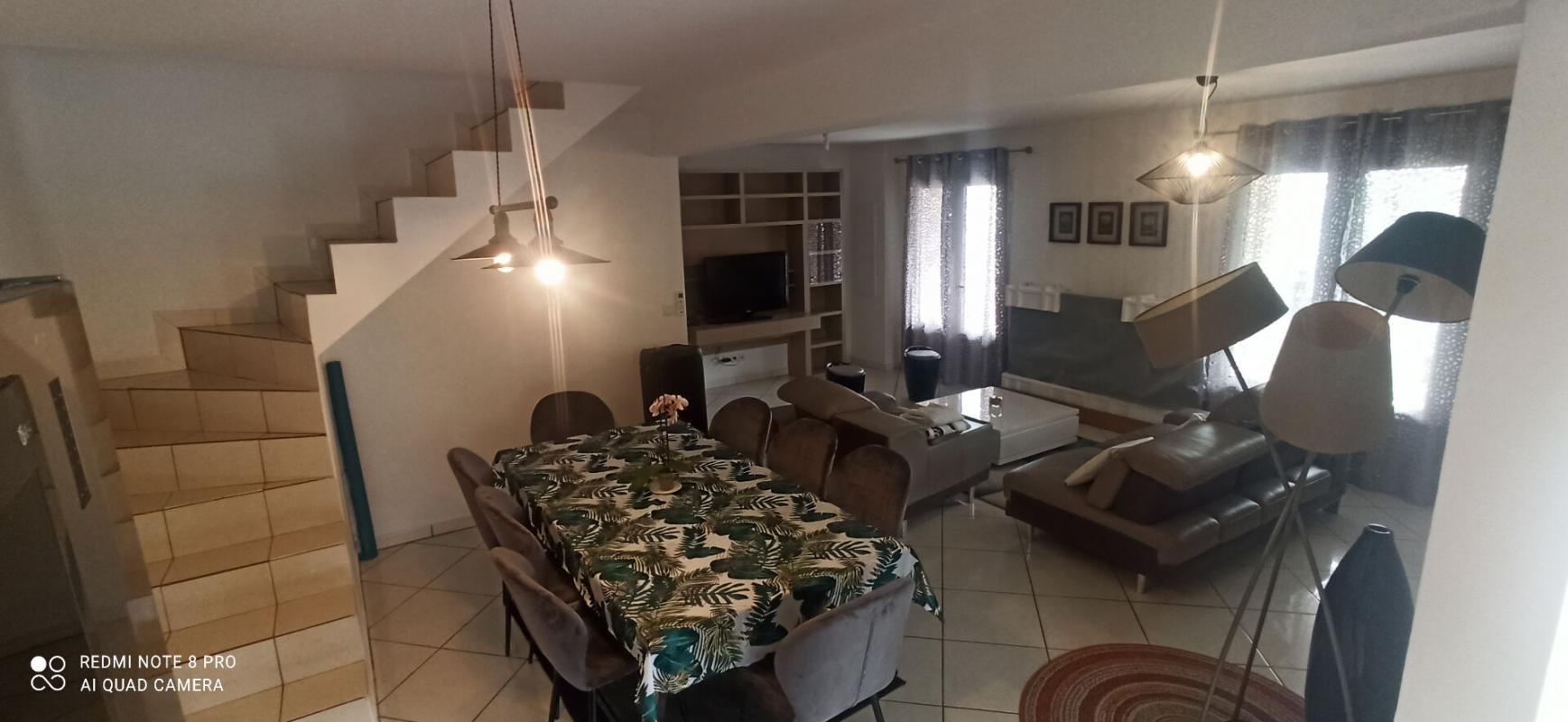 ORPI ST-PIERRE. Villa meublée de type F5 sur 3 niveaux avec jardin , vue, clôturée, garage, emplacement extérieur pour voiture, non loin de 2 petites surfaces, médecins, pharmacie et autres.. En RDJ : 1 grande terrasse en L, 1 cuisine équipée/aménagée ouverte sur un séjour, 1 chambre, 1 salle de bain, wc.. A l'étage : 3 chambres, 1 salle de bain, 1 wc.. . Loyer avec charges (TEOM) 1500.00 euros dont :. - 30.00 euros de TEOM. Dépôt de garantie : 3000.00 euros. Honoraires de location : 1265.00 euros. ORPI : 02.62.51.74.74