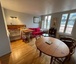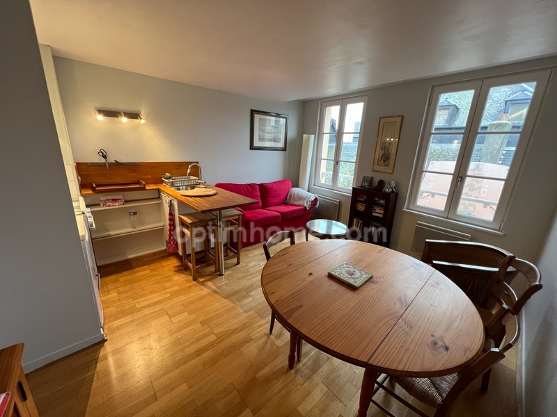 Situé dans le centre ville d'Honfleur, ce bel appartement en duplex de 37m² loi Carrez et 50m² au sol, saura vous séduire par son côté atypique. En effet, la disposition des pièces donne une impression d'espace et d'indépendance. Grâce à sa localisation idéale, en plein cœur du Quartier Sainte Catherine avec ses galeries d'art, ses commerces, son marché tous samedi les matins, pas besoin de véhicule pour de déplacer, vous pourrez tout faire à pied, entre courses, découvertes et balades sur le vieux port ! Vous noterez que l'emplacement est également idéal pour une activité de Gîtes avec accord de la Mairie. Ainsi dès l'entrée on pourra se diriger légèrement sur la droite vers une petite pièce mansardée pouvant faire office de salon ou chambre d'appoint. La pièce à vivre, quant à elle (non mansardée), se situe à gauche de l'entrée et propose un espace fonctionnel, ouvert sur le séjour et la kitchenette, un espace agréable, calme et lumineux. L'appartement dispose également d'une salle de bain, complétement carrelée et ornée d'un beau parquet bois "type pont de bateau" et comprenant une baignoire, 1 lavabo simple vasque et les WC. L'espace nuit se situe lui à l'étage du duplex et propose une belle et grande chambre d'environ 16m² au sol, dans laquelle vous pourrez installer commode ou armoire et même un bureau si vous le souhaitez. Vous serez, par ailleurs, séduits par le bel escalier desservant cette partie haute de l'appartement. Bref, vous l'aurez compris, nous vous proposons une très belle opportunité à découvrir sans plus tarder ! Nombre de lots de la copropriété: 6, Montant moyen de la quote-part annuelle de charges (budget prévisionnel) (Eau) : 1110€ soit 92€ par mois. Les honoraires sont à la charge du vendeur. Logement à consommation énergétique excessive : classe GLes informations sur les risques auxquels ce bien est exposé sont disponibles sur le site Géorisques : www. georisques. gouv. fr. Contactez Tony GRIGNOLA Entrepreneur individuel, Agent commercial OptimHome (RSAC N°885 181 719 Greffe de LISIEUX) 06 13 91 45 40 https://www.optimhome.com/conseillers/grignola (réf. 525275 )