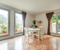 Au sein d'une petite résidence moderne avec vue sur la Seine, venez découvrir ce spacieux 5 pièces de 131m². Il vous propose une belle entrée avec placards, un double salon de plus de 36m² qui vous conduira de plain-pied vers la grande TERRASSE entourée de verdure, une cuisine spacieuse aménagée et équipée (ouverture partielle sur le séjour possible), 3 CHAMBRES dont une avec salle d'eau attenante, une buanderie, un dressing, une grande salle de bain avec WC, douche et baignoire, un dégagement avec de nombreux placards et en bonus, accessible par la troisième chambre, un salon d'été / salle de jeux de 16m² avec de grandes baies vitrées ouvertes sur la terrasse. L'appartement est en très bon état et il dispose d'un bon bilan énergétique en D. Vous pourrez également bénéficier d'un BOX et d'une place de PARKING extérieure. Situation rare du fait de la surélévation du bâtiment, vous pourrez apprécier les avantages d'un rez-de-jardin avec sa terrasse de plain-pied sur la verdure et les avantages d'un appartement en étage avec la luminosité et la vue dégagée sur la Seine. La résidence est équipée d'un ASCENSEUR qui permet d'accéder à l'appartement depuis l'espace parking. Vous bénéficierez également d'un bus à côté de la résidence pour rejoindre rapidement soit St Germain soit La Défense. Vous pourrez également accéder rapidement au Centre de Bougival, bénéficier des balades du bord de Seine ou rejoindre à pied la gare de Louveciennes (20-25mn). VISITE VIRTUELLE sur demande. Nombre de lots de la copropriété: 15, Montant moyen de la quote-part annuelle de charges (budget prévisionnel) (Eau, entretien, syndic +44€ Alur) : 3584€ soit 298€ par mois. Les honoraires d'agence sont à la charge de l'acquéreur, soit 2,38% TTC du prix du bien.Les informations sur les risques auxquels ce bien est exposé sont disponibles sur le site Géorisques : www. georisques. gouv. fr. Contactez Romain ROUGET Entrepreneur Individuel à Responsabilité Limitée, Agent commercial OptimHome (RSAC N°825 307 358 Greffe de VERSAILLES) 06 19 95 13 05 https://www.optimhome.com/conseillers/rouget (réf. 538184 )