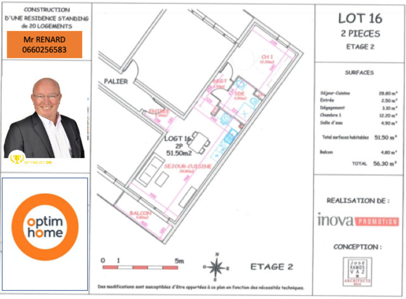 Dans petite résidence sécurisée, F2 de 52 m2 comprenant entrée, coin cuisine, séjour avec balcon, chambre, sdo, wc. Box en supplément Cette copropriété ne pourra que vous séduire avec ses appartements spacieux, bien agencés et possédant tous des extérieurs (balcons ou terrasses). Possibilité de Box individuel Pour votre confort, la résidence répondra à la réglementation RT 2012. Nombre de lots de la copropriété: 40, Montant moyen de la quote-part annuelle de charges (budget prévisionnel) : 720€ soit 60€ par mois. Les honoraires sont à la charge du vendeur.Les informations sur les risques auxquels ce bien est exposé sont disponibles sur le site Géorisques : www. georisques. gouv. fr. Contactez Michel RENARD Entrepreneur Individuel, Agent commercial OptimHome (RSAC N°378 931 182 Greffe de BOBIGNY) 06 60 25 65 83 https://www.optimhome.com/conseillers/renard (réf. 537097 )