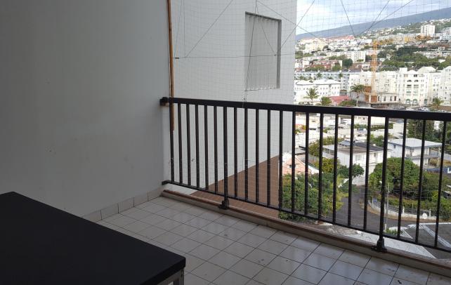 Saint-Denis, proche de la CGSS, des commerces des écoles, du boulevard Sud. Investissement locatif, appartement T1 bis, dispose d'une pièce principale avec une mezzanine, un coin cuisine, une douche- un wc, un cellier, une terrasse avec une vue montagne, et un box au sous sol. Résidence sécurisée, calme, avec ascenseur, Locataire en place loyer mensuel: 471,29 EUR. Nombre de lots 112. Taxe foncière: 1130 EUR, charges mensuelles: 115 EUR, construction de 1978, le ravalement de façade fait.