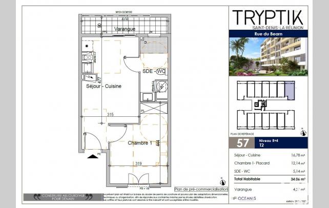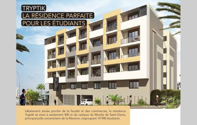 iad France - Joël DENAGE (06 92 73 92 03) vous propose : Dans la future résidence TRIPTIK, cet appartement T2 de 34m2 environ avec une petite varangue, située à 400m du campus du Moufia, principal pôle universitaire de la REUNION.