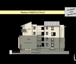 Situé au 3ème ETAGE avec ascenseur, orienté MER, au sein d’une petite copropriété à l’architecture contemporaine et soignée, de seulement 18 logements répartis sur 4 étages : La Résidence MAM’ZELLE PAULA.