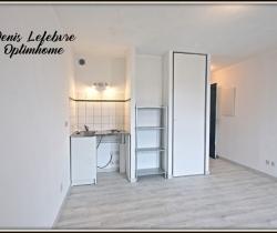 EXCLUSIVITE Denis LEFEBVRE - OPTIMHOME vous propose : BEAU STUDIO à 800m de la Gare TGV d'Arras et 50 minutes de Paris, 200m de l'université d'Artois. Parc du RIETZ, commerce, école et arrêt de bus à proximité. Idéal pour investissement locatif. Ce studio de 18,14m2, situé au 1er étage (sans ascenseur), est composé : -d'une entrée avec petit rangement. -d'une salle d'eau avec lavabo, douche, WC et une étagère. -un séjour/cuisine de 13m2 avec meuble évier et plaque de cuisson électrique. Egalement une étagère et un placard de rangement. La grande fenêtre est exposé nord-Ouest et équipée d'un volet roulant manuel. Un gardien est présent dans l'immeuble et l'accès est sécurisé par un badge magnétique. Entièrement rénové, il n'y a aucun travaux à prévoir. Visite virtuelle disponible avant de réserver une visite. Nombre de lots de la copropriété: 326, Montant moyen de la quote-part annuelle de charges (budget prévisionnel) : 649€ soit 54€ par mois. Les honoraires sont à la charge du vendeur.Les informations sur les risques auxquels ce bien est exposé sont disponibles sur le site Géorisques : www. georisques. gouv. fr. Contactez Denis LEFEBVRE Entrepreneur Individuel, Agent commercial OptimHome (RSAC N°848 250 973 Greffe de ARRAS) 07 69 70 27 08 https://www.optimhome.com/conseillers/d.lefebvre (réf. 538943 )