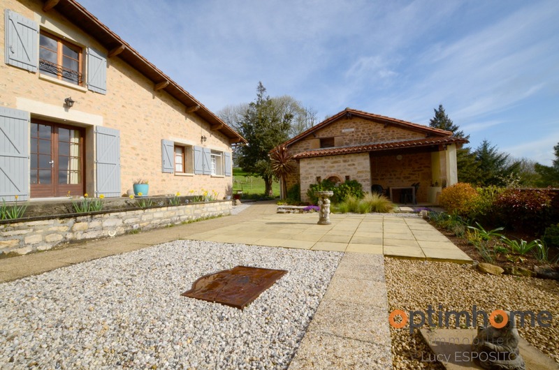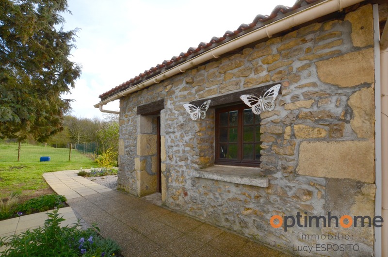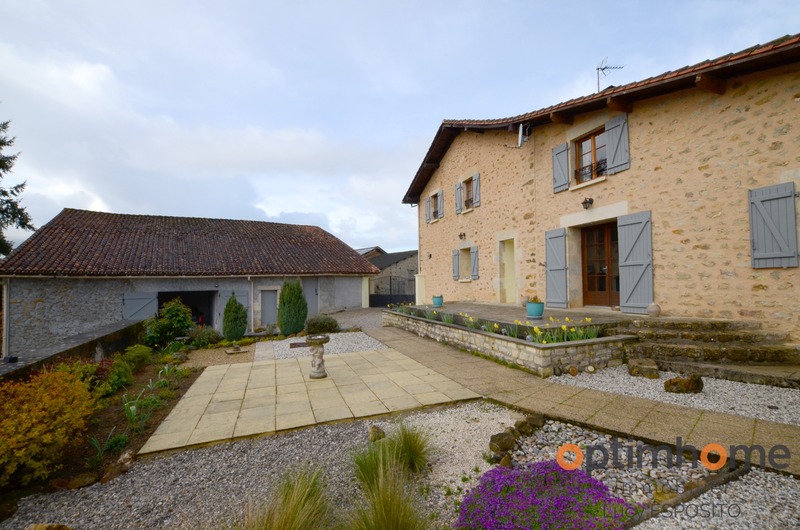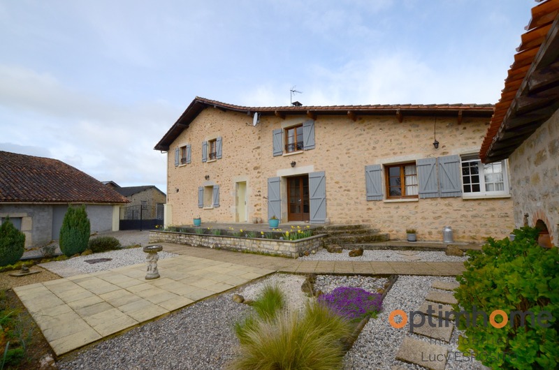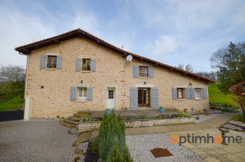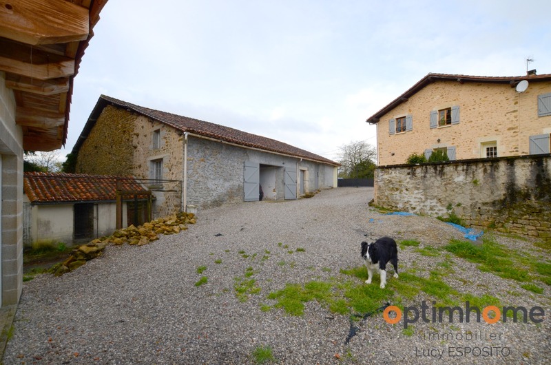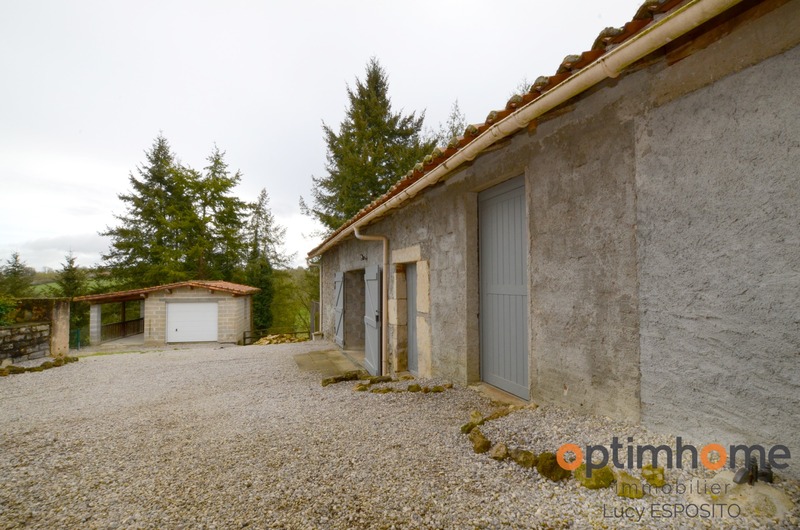 ENGLISH DESCRIPTION BELOW Dans la commune d'Alloue, ce trouve cette belle maison mitoyenne d'un côté, exposé sud est en pierre avec des vus panoramique magnifique! Comprenant au rez-de-chaussée d'une entrée, cuisine de 19.5m² avec placard, salon/salle à manger de 35m², chaufferie de 12m², hall de 18m² avec placard, salle de bains avec WC de 3m². A l'étage salle de bains avec WC de 8.25m², trois belle chambres de 10,11 et 18m². A l’extérieur une petite ancienne maison à l'usage de stockage avec four à pain, grange de 25m² et garage sur deux niveaux Double vitrage, chauffage central avec chaudière à bois, poêle à bois, toitures récentes, assainissement individuelle. Jardin attenant à la maison de 7731m² et deux parcelles de bois séparées de 8942m2, le tout sur 16 673m2. ENGLISH DESCRIPTION In the town of Alloue, I present to you is this beautiful house attached on one side facing south east in stone with magnificent panoramic views of the countryside ! Comprising on the ground floor of an entrance, a beautifully fitted kitchen of 19.5m² with a store cupboard, a spacious living/dining room of 35m², a boiler room of 12m², a hallway of 18m² with a cupboard, a bathroom with WC of 3m². Upstairs a family bathroom with WC of 8.25m², three beautiful bedrooms of 10, 11 and 18m². Outside a small old house currently used as storage with an original bread oven, a 25m² barn and garage on two levels. Double glazing, central heating with a wood-fired boiler, a wood-burning stove, recent roofs, individual sanitation. A large garden with trees and shrubs adjoining the house of 7731m² and two separate plots of wood of 8942m2, all on 16,673m2. Les honoraires d'agence sont à la charge de l'acquéreur, soit 4,21% TTC du prix du bien. Logement à consommation énergétique excessive : classe FLes informations sur les risques auxquels ce bien est exposé sont disponibles sur le site Géorisques : www. georisques. gouv. fr. Contactez Lucy ESPOSITO Entrepreneur Individuel, Agent commercial OptimHome (RSAC N°829 508 415 Greffe de ANGOULEME) 07 67 70 78 24 https://www.optimhome.com/conseillers/esposito (réf. 538525 )