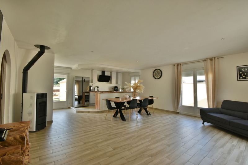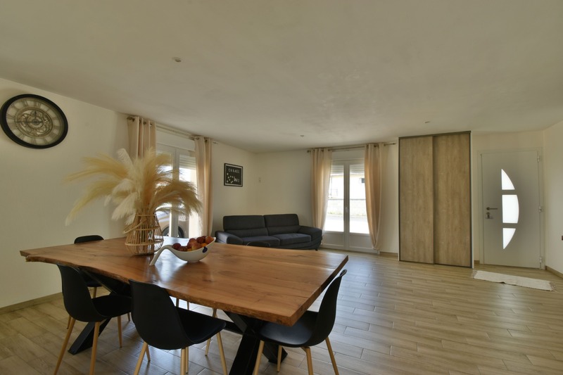 A CHATELLERAULT, au nord, maison de plain pied construite en 2017, sur un terrain entièrement clos de mur de 910 m², comprenant une entrée avec placards dans la pièce de vie de 50 m² avec une cuisine aménagée et équipée (plaque, four et hotte) avec accès au jardin à l'arrière. Le couloir dessert une salle d'eau, trois chambres de 9, 11 et 12 m², wc indépendant Garage indépendant de 40 m² Terrain autour Côté technique : huisseries double vitrage volets roulants manuels, poële à granulés, isolation laine pulsée, tout à l'égoût Visite virtuelle sur demande Les honoraires d'agence sont à la charge de l'acquéreur, soit 4,76% TTC du prix du bien.Les informations sur les risques auxquels ce bien est exposé sont disponibles sur le site Géorisques : www. georisques. gouv. fr. Contactez Sabine LADAGNOUS Entrepreneur Individuel, Agent commercial OptimHome (RSAC N°838 277 598 Greffe de POITIERS) 06 34 31 82 03 https://www.optimhome.com/conseillers/ladagnous (réf. 518738 )