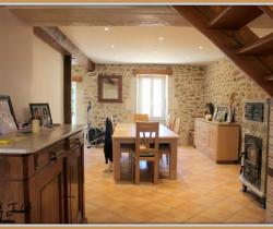 Belle propriété en pierre située à environ 5 minutes de La Roche Chalais, dans un hameau, au calme, peut correspondre à de nombreux projets. La maison principale est composée au rez de chaussée d'une cuisine, d'un vaste séjour/salon de plus de 47m² avec cheminée et poêle alsacien ( qui chauffe toute la maison) , une salle d'eau, une buanderie. Au 1er étage se trouve 4 belles chambres avec placards. Au 2eme étage, se trouve un grand grenier de plus de 50m² mansardé a finir d'aménager. L'ensemble des huisseries sont en double vitrage pvc, la toiture est en bon état, la maison est raccordée à la fibre. En face de la maison principale se trouve un second bâtiment de plus de 150m² au sol, possibilité de faire un étage, ( avec un sous sol d'environ 45m²) avec chape béton, toiture neuve, qui ne demande qu'à être aménagé en maison, gîtes,...etc L'ensemble se trouve sur un beau terrain d'environ 1.5ha avec un puits. Propriété plein de charme, qui peut correspondre à un projet de gîtes, de regroupement familiale, tourismes, projet de permacultures, propriétaires de chevaux,.....A VOIR!! Les honoraires d'agence sont à la charge de l'acquéreur, soit 4,76% TTC du prix du bien.Les informations sur les risques auxquels ce bien est exposé sont disponibles sur le site Géorisques : www. georisques. gouv. fr. Contactez Charlotte JAUBERT Entrepreneur Individuel, Agent commercial OptimHome (RSAC N°833 941 545 Greffe de ANGOULEME) 06 14 62 79 03 https://www.optimhome.com/conseillers/jaubertc (réf. 538171 )