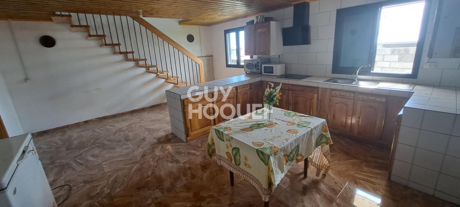 L'agence Guy Hoquet vous propose à la vente en exclusivité une maison à étage de type F4 d'environ 131 m² habitables, édifiée sur un terrain d'une superficie cadastrale de 466 m². Cette propriété se compose au rdc d'une varangue d'environ 20 m², une cuisine équipée, un salon-salle à manger, une salle d'eau avec un W.C. séparé et une chambre. A l'étage, vous profiterez de 2 chambres avec vue montagne. Coté extérieur : Jardin clos et arboré, abris voiture. => Atouts : - A 10 min en voiture de la voie rapide et du centre-ville. - Ecole primaire à proximité. - Secteur calme et résidentiel. - Fond d'impasse. Honoraire charge vendeur. Stephane Marimoutou (EI) Agent Commercial - Numéro RSAC : - .