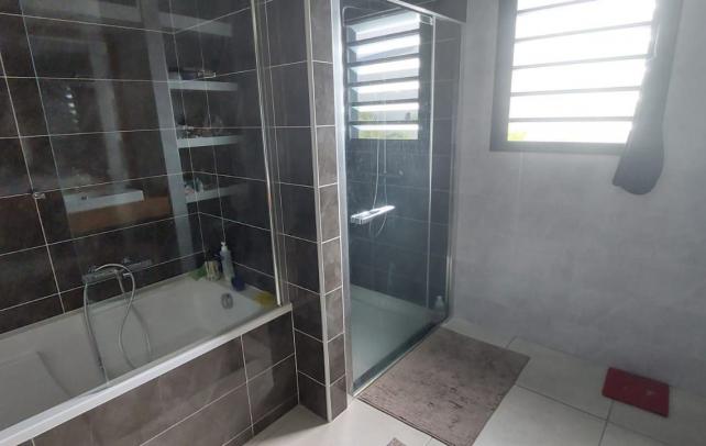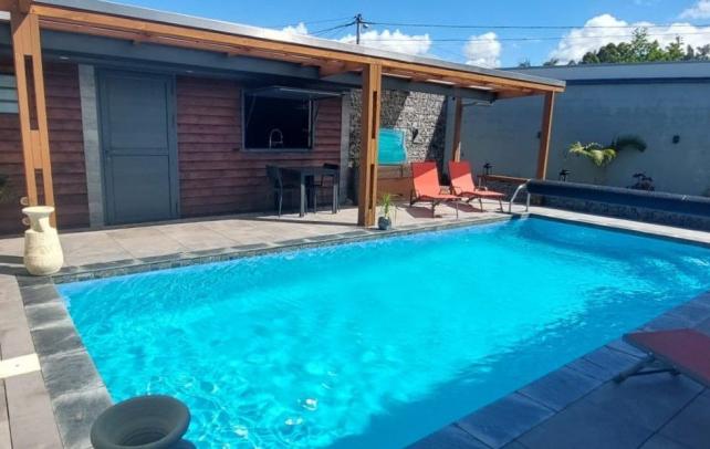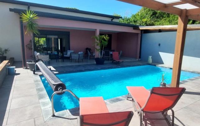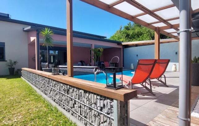 Son espace de vie principale de près de 60m2 environ donne sur une varangue qui vous transporte en vacance : Piscine, jacuzzi, jardin et cuisine extérieure.