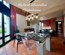 !!! VISITE VIRTUELLE UNIQUEMENT SUR DEMANDE !!! Laissez-vous porter par cette maison d'architecte de 1985 avec piscine et de belles prestations. Elle se compose d'une cuisine moderne avec verrière donnant sur un séjour lumineux avec cheminée, une chambre de plain-pied, wc, buanderie, véranda, un atelier donnant accès à un appartement de 40 m2 avec un séjour, cuisine ouverte neuve et moderne, un magnifique escalier donnant sur un palier qui dessert une chambre, salle de douche et wc. A l'étage, vous trouverez un palier donnant sur 3 chambres, une grande salle de bains et douche, wc et un dressing. Une piscine de 2019 chauffée par pompe à chaleur, avec liner gris et au sel, un rideau électrique la sécurise. Un garage avec atelier, portail automatique avec interphone sur un terrain clos avec 2 accès extérieur. Un bien rare sur le secteur et idéalement situé à 2 pas du centre-ville dans un environnement calme et retiré. Quelques travaux de rafraîchissement sont à prévoir. La Flèche, commune du sud du département de la Sarthe, est située dans la vallée du Loir, à l'ouest du Maine angevin. Elle se trouve, à vol d'oiseau, à 39 km du Mans, 44 km d'Angers, 66 km de Tours, 66 km de Laval et 220 km de Paris Les honoraires sont à la charge du vendeur. Le Diagnostic de Performance Energétique(DPE) a été réalisé selon une méthode valable mais non fiable et non-opposable. Les informations sur les risques auxquels ce bien est exposé sont disponibles sur le site Géorisques : www. georisques. gouv. fr. Contactez Mickaël BOURDAIS Entrepreneur Individuel, Agent commercial OptimHome (RSAC N°482 034 881 Greffe de LE MANS) 06 66 96 69 90 https://www.optimhome.com/conseillers/m.bourdais (réf. 538777 )