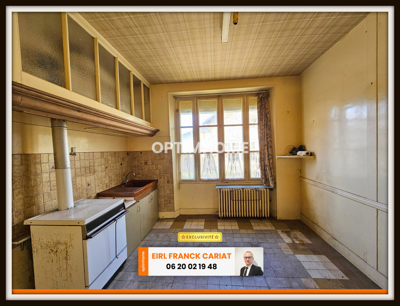 Maison de campagne de 134 m² avec des dépendances. L’ensemble sur 1185 m² de terrain clos et un accès à la rivière. Le chauffage principal (chaudière HS) avec des radiateurs en fonte. Les fenêtres sont en bois à simple vitrage avec des persiennes en métal. Maison lumineuse. Tout-à-l’égout. REZ-DE-CHAUSSÉE : Cuisine de 13.3 m². Séjour de 36.4 m². Chambre 1 ou bureau de 13.4 m². Couloir de 5.1 m². Cave en sous-sol de 15 m². ÉTAGE 1 : Chambre 2 de 18 m². Chambre 3 de 18.1 m². Chambre 4 de 13.5 m² et la chambre 5 de 12.7 m² avec WC. Palier de 4 m² avec un accès grenier. COMBLE : Grenier aménageable de 60 m². ANNEXES : Atelier de 125 m² avec barge à l’étage. Garage de 38 m² avec barge de stockage. Abri et Hangar sur 30 M². *** LES PLUS : Exposition du séjour Sud-Ouest. Maison chaleureuse et accueillante dans une petite ville. Un accès à la rivière. . Proche des commerces : école, coiffeurs, esthéticienne, boulangerie, fleuriste, supérette, médecin, pharmacie, restaurateur… *** Les honoraires sont à la charge du vendeur. Logement à consommation énergétique excessive : classe FLes informations sur les risques auxquels ce bien est exposé sont disponibles sur le site Géorisques : www. georisques. gouv. fr. Contactez Franck CARIAT Entrepreneur Individuel à Responsabilité Limitée, Agent commercial OptimHome (RSAC N°832 621 080 Greffe de GUERET) 06 20 02 19 48 https://www.optimhome.com/conseillers/cariat (réf. 538939 )