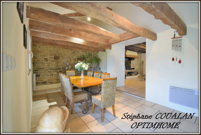 Cette longère de 6 pièces (T6), rénovée avec goût, dispose au rez-de-chaussée : une pièce de vie 52 m² comprenant un séjour, un salon de 34 m² avec son ancienne cheminée et son poêle à bois, une cuisine aménagée et équipée, une buanderie avec placard, trois grandes chambres avec placard, un bureau, une salle d’eau et un WC indépendant. A l’étage : une suite parentale constituée d’une grande chambre de 28 m² avec deux placards et sa salle d’eau privative avec son WC. Vous disposerez également d’un grand garage attenant avec porte automatique de 46 m² et son grenier. Vous aurez la possibilité d’aménager un deuxième grenier de 50 m², à votre convenance. Le tout sur un terrain piscinable de 1550 m² avec une cour pour le stationnement des véhicules. Une cuisine extérieure pour vos garden-partys, ainsi que deux terrasses. Pas de travaux à prévoir, juste poser vos valises ! Chauffage électrique et bois, fosse septique aux normes. N’hésitez pas à me contacter pour réserver votre visite ou faire le point sur votre projet immobilier au 06.77.07.26.55. Les honoraires sont à la charge du vendeur.Les informations sur les risques auxquels ce bien est exposé sont disponibles sur le site Géorisques : www. georisques. gouv. fr. Contactez Stéphane COUALAN Entrepreneur Individuel, Agent commercial OptimHome (RSAC N°535 247 787 Greffe de RENNES) 06 77 07 26 55 https://www.optimhome.com/conseillers/coualan (réf. 538616 )