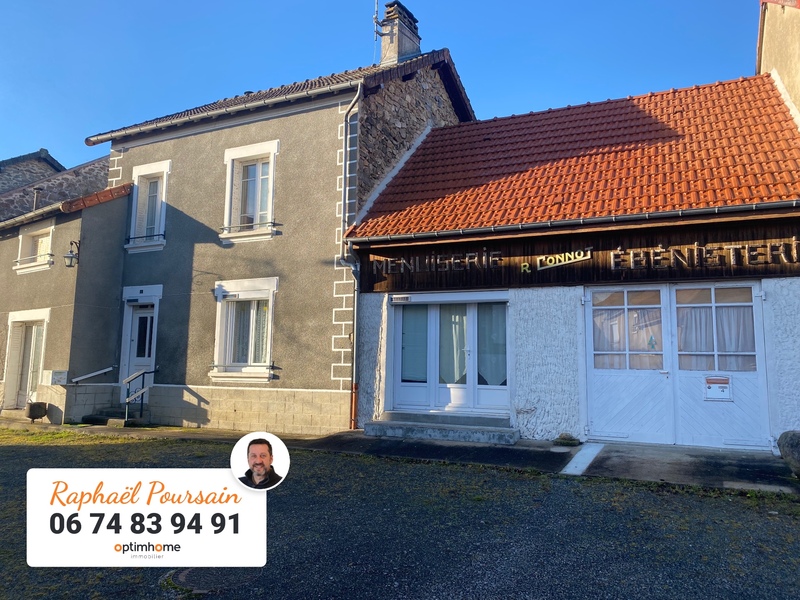 Vente en Exclusivité Raphael Poursain Immobilier Tout renseignement complémentaire se fera exclusivement par téléphone 06 74 83 94 91, merci de votre compréhension. Pour voir plus de photos de ce bien, consultez notre site internet www.poursain.optimhome.com Maison de 95m2 avec garage, atelier et dépendances sur une parcelle de 453m2. Dans le bourg de Saint Maurice la Souterraine 23300, dans une impasse, au calme. A 5 minutes de La souterraine, ou vous trouverez toutes les commodités, école primaire, collège, lycée, gare SNCF. Au rez-de-chaussée vous trouverez, une entrée qui distribue d’un côté un salon de 20m2, de l’autre, une cuisine de 12m2, une arrière cuisine de 8,5m2, une chambre de 11m2 avec salle d’eau. A l’étage, un palier qui distribue 3 chambres de 11, 11 et 9m2. 1 salle de bain, 2 petits greniers. Attenant à la maison un garage, atelier d’environ 65m2. Non attenant, un autre atelier de 10m2 et une dépendance de 10m2. Maison vendue avec le mobilier si besoin. Caractéristiques du bien : Maison en pierre Toiture en bon état. Terrain/jardin à l’arrière de la maison, qui est clos et arboré. Double vitrage sur quelques huisseries. Système de chauffage électrique. Electricité en bon état. Assainissement tout à l’égout. Taxe Foncière 397euros. Maison en bon état, avec potentiel, et grandes dépendances. A venir visiter sans tarder Raphael Poursain immobilier - Vous souhaitez davantage de renseignements ? Contactez Raphael 06 74 83 94 91 ou Caroline au 06 46 79 29 05. Tout renseignement complémentaire se fera exclusivement par téléphone, merci de votre compréhension. Pour voir plus de photos de ce bien, consultez notre site internet www.poursain.optimhome.com Raphael Poursain Immobilier Les honoraires d'agence sont à la charge de l'acquéreur, soit 6,58% TTC du prix du bien.Les informations sur les risques auxquels ce bien est exposé sont disponibles sur le site Géorisques : www. georisques. gouv. fr. Contactez Raphael POURSAIN Entrepreneur Individuel à Responsabilité Limitée, Agent commercial OptimHome (RSAC N°822 845 053 Greffe de LIMOGES) 06 74 83 94 91 https://www.optimhome.com/conseillers/POURSAIN (réf. 538615 )