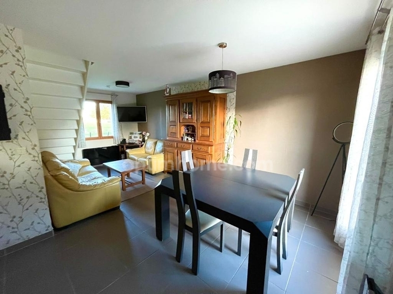 Sandrine & Tony GRIGNOLA, OPTIMHOME Immobilier, vous proposons à la vente cette maison individuelle édifiée en 2007, d'une surface habitable de 100m² répartie sur deux niveaux. La maison, idéalement située dans un quartier calme, à la campagne, est implantée sur un terrain clos de 1500m², avec la possibilité d'acquérir 1600m² de terrain à bâtir juste à côté. Au niveau du rez-de-chaussée et de l'espace "à vivre", vous découvrirez un séjour composé d'une belle cuisine américaine, entièrement aménagée et équipée. Celle-ci est ouverte sur la salle à manger et vous permettra de partager vos repas en famille en intérieur, et en extérieur l'été puisque la porte-fenêtre à ce niveau s'ouvre sur une terrasse d'environ 25m², exposée sud-ouest. Le salon, quant à lui, espace cosy, vous accueillera pour flâner, vous reposer, lire ou encore regarder la télévision. ... Le rez-de-chaussée à l'avantage de proposer également un "espace nuit" composé d'une chambre et de son dressing, d'une belle salle de bain avec baignoire, douche et simple vasque. Et pour tous vos rangements, une grande buanderie. Au niveau de l'étage, l'espace "nuit" propose une belle pièce palière offrant de beaux potentiels, soit pour une chambre d'appoint et/ou salle de jeux, soit pour un bureau, où les enfants pourront étudier et où vous même pourrez télétravailler à votre guise. Ensuite, le couloir qui dispose de nombreux rangements sur toute sa longueur, dessert deux belles chambres de 11 et 17m², avec des hauteurs sous-plafond permettant d'y installer un lit mezzanine. Enfin, pas besoin de rejoindre le rez-de-chaussée pendant la nuit pour une envie pressante car l'étage dispose d'un WC. En extérieur, on trouvera; - de nombreuses places de stationnement - une dépendance pour le matériel et les outils de jardinage Les avantages de la maison : - la possibilité d'occuper la maison de plain-pied (suite parentale, salle de bain et WC) - les huisseries sont en bois double vitrage - l'isolation phonique au niveau des cloisons - une bonne isolation ( le foyer, actuellement composé de 6 personnes, ne consomme au total que 190€/mois d'électricité comprenant le chauffage, l'électroménager et la production d'eau chaude). - la situation géographique : Bernay est à 9km, Brionne 7km, Thiberville 15 km - Accès rapide à la RN13 et l'A28. Les honoraires sont à la charge du vendeur.Les informations sur les risques auxquels ce bien est exposé sont disponibles sur le site Géorisques : www. georisques. gouv. fr. Contactez Tony GRIGNOLA Entrepreneur Individuel, Agent commercial OptimHome (RSAC N°885 181 719 Greffe de LISIEUX) 06 13 91 45 40 https://www.optimhome.com/conseillers/grignola (réf. 529650 )