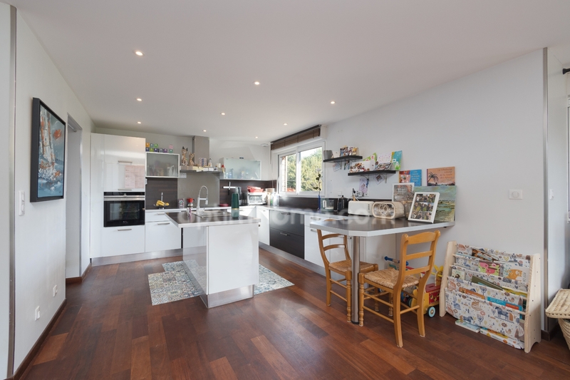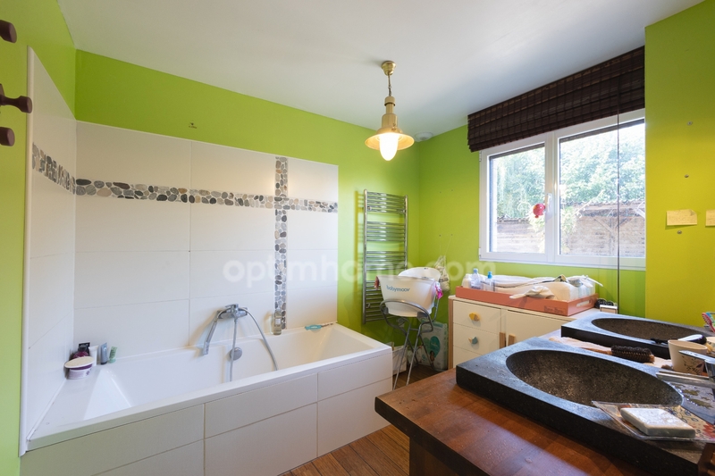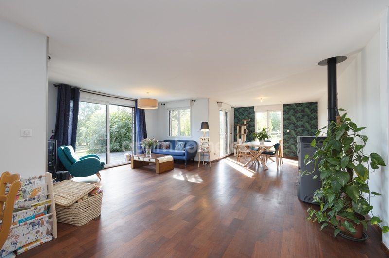 EN EXCLUSIVITE - A 10 km de Honfleur, Saint Gatien des Bois et Beuzeville - Dans un environnement calme et résidentiel - Nichée dans un écrin de verdure, à proximité à pied ou en vélo de nombreuses ballades - Maison contemporaine à ossature bois - D'une surface de 163 m2, elle se compose de 7 pièces - En rez de chaussée : une entrée avec placard - une pièce à vivre de plus de 50 m2 avec cuisine US équipée ouverte sur salon et séjour - Accès direct à une spacieuse terrasse bois, orientée plein sud - 1 chambre - 1 salle de bains et un wc - A l'étage un palier dessert 3 chambres mansardées - une salle d'eau et un wc - Double garage attenant avec pièce de 30 m2 à finir d'aménager - Carport, abris de jardin, box pour un poney ou des moutons - Terrain clos et arboré de 5000 m2 - Assainissement individuel conforme - Chauffage électrique et poêle à granulés - Ambiance chaleureuse et contemporaine, superbe luminosité - A DECOUVRIR SANS TARDER ! Les honoraires sont à la charge du vendeur. Le Diagnostic de Performance Energétique(DPE) a été réalisé selon une méthode valable mais non fiable et non-opposable. Les informations sur les risques auxquels ce bien est exposé sont disponibles sur le site Géorisques : www. georisques. gouv. fr. Contactez Marie LE GOASTER - DEGRAND Entrepreneur Individuel à Responsabilité Limitée, Agent commercial OptimHome (RSAC N°533 913 208 Greffe de LISIEUX) 06 03 21 20 65 https://www.optimhome.com/conseillers/legoaster (réf. 538629 )