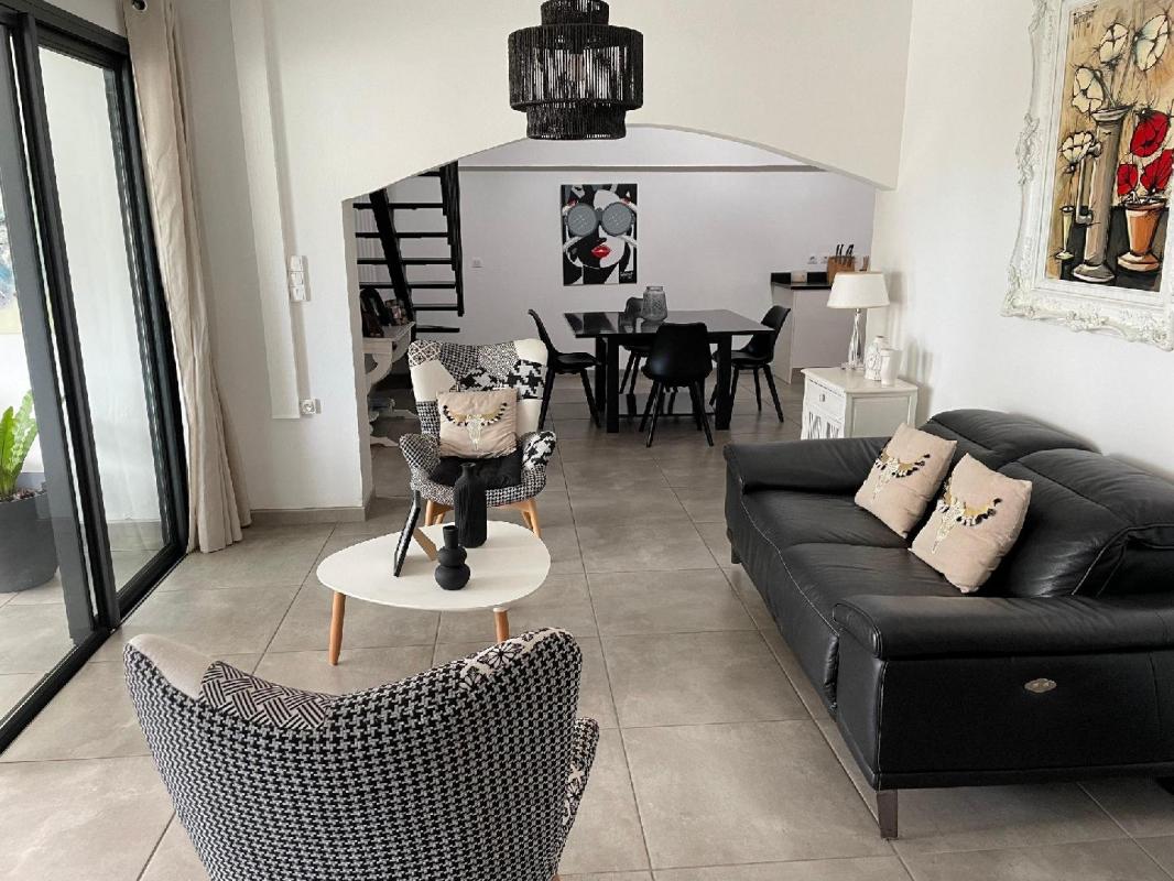 Maison de 6 pièces atypique d'une surface habitable de 213.4 m² avec beaucoup de charme et de volume composée au rez-de-chaussée d'une belle cuisine avec hauteur de plafond au design moderne, d'une salle à manger, d'un salon, un espace séjour cosy, d'un bureau, de 3 chambres climatisées avec des rangements et d'une salle de bain au style épuré, à l'étage, vous aurez une chambre d'ami... il y a une dépendance de 52 m², en plus d'un espace cellier/buanderie, de wcs, une grande terrasse extérieur propice aux moment conviviaux donnant sur une belle piscine au sel.