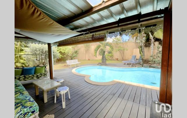 À l’extérieur vous trouverez un espace varangue couverte donnant sur le jardin, un espace salon extérieur donnant sur la piscine au sel et vous pourrez profiter de nombreux arbres fruitiers.