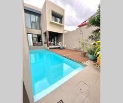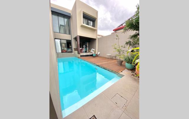 LNA vous propose à la vente à proximité de l'église Saint-Jacques, une superbe villa datant de 2015. Une grande pièce à vivre et une cuisine entièrement équipée s'ouvrent sur une jolie varangue accolée à une piscine au sel. A l'étage 3 chambres climatisées dont 2 avec salle d'eau et un WC séparé. La plus grande des chambres est équipée d'un grand dressing, les 2 autres de placards. 2 places de parking et une buanderie extérieure complètent ce bien très rare à Saint-Denis. Co-proporiété de 2 lots sous procédure de difficulté.