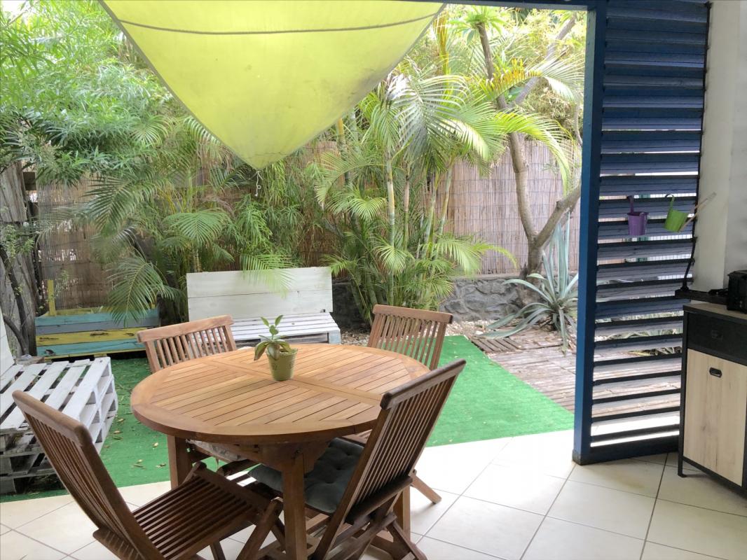 Alter Immobilier vous propose en exclusivité : A Saint Gilles les Bains, quartier de Grand Fond, une maison type T2 duplex, d'une surface habitable d'environ 51,30 m2 comprenant : - au niveau inférieur : un hall, un séjour avec placard, une cuisine avec placard, un WC, l'escalier derservant l'étage. Une varangue d'environ 9,30 m2 - au niveau supérieur : un dégagement, une chambre avec placard, une salle de bains avec un WC, une petite alcove et une varangue d'environ de 6,90 m2 Un jardin privatif clos d'une surface d'environ 40 m2, et deux parkings. Proche lagon, supermarché, à cinq minutes de la route des Tamarins. La maison est louée jusqu'en mai 2023. Dans petite copropriété de 9 logements, charges annuelles 970 euros. Frais d'agence charge vendeur. Pour tous renseignements, contacter notre agent commercial "EI" Marc BONNIN au 0692762007 ou m.bonnin@alter immobilier.re