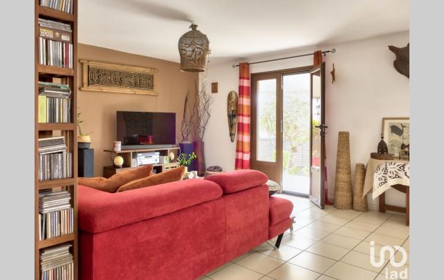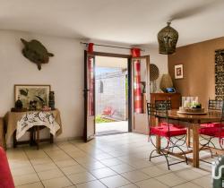 La maison se compose d’un séjour de 32m2 environ donnant sur une cuisine américaine et un dégagement.