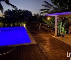 iad France - Nadia CARUSO (06 92 60 44 60) vous propose : Saint Gilles les Bains, Grand Fond : Villa d’exception Située à environ 300 mètres de l’Océan, de type T5 et sur une parcelle arborée de 1 400 m² environ, cette villa est située dans un petit lotissement résidentiel et sécurisé Elle est composée de grandes pièces lumineuses sous de belles hauteurs de plafond. D'une surface habitable de 135 m²environ, elle se décompose avec un lieu de vie salon/salle à manger/cuisine américaine équipée et cellier, d’1 grande suite parentale avec dressing et salle de bain, de 3 chambres spacieuses et 1 salle de bain supplémentaire. L’espace extérieur invite à la détente avec une grande varangue en pierre de travertin, un immense deck et une grande piscine, ce qui donne une réelle valeur ajoutée à ce bien. A cela se rajoute un garage fermé de 22m² environ et une annexe pouvant servir de bureau indépendant de 8 m² environ. Proche de tous commerces et écoles (maternelle, primaire et collège).