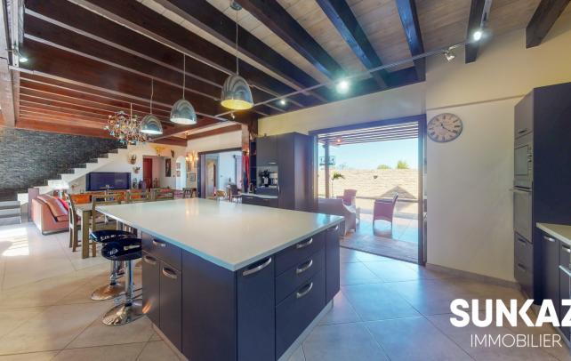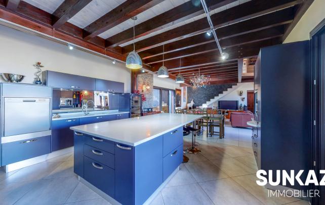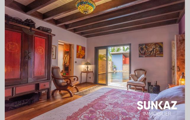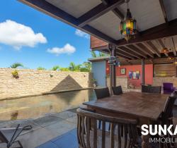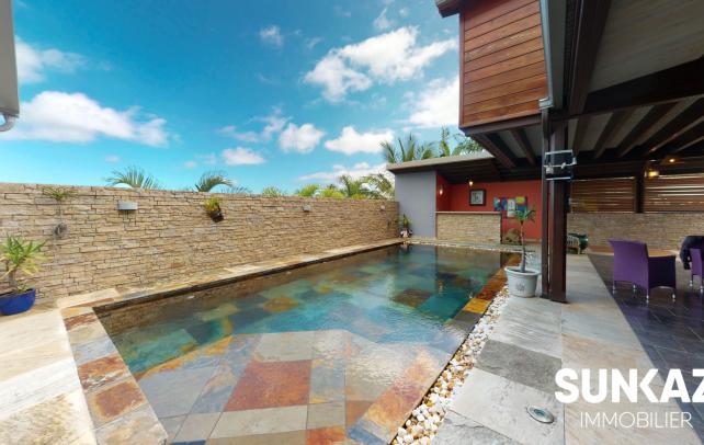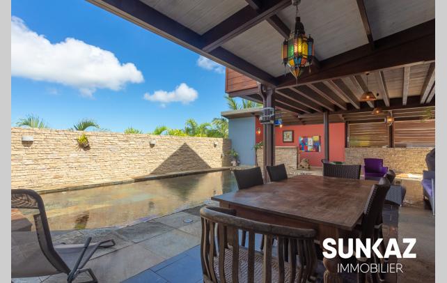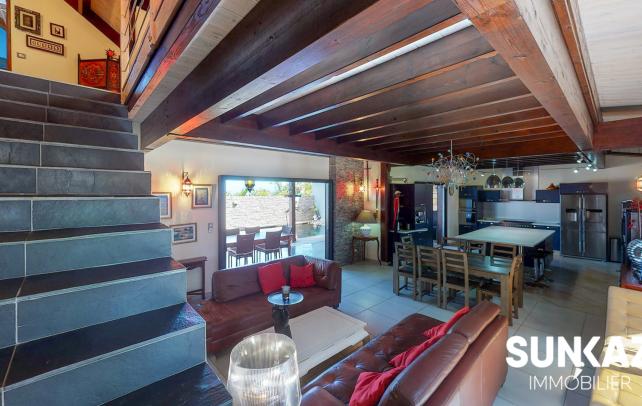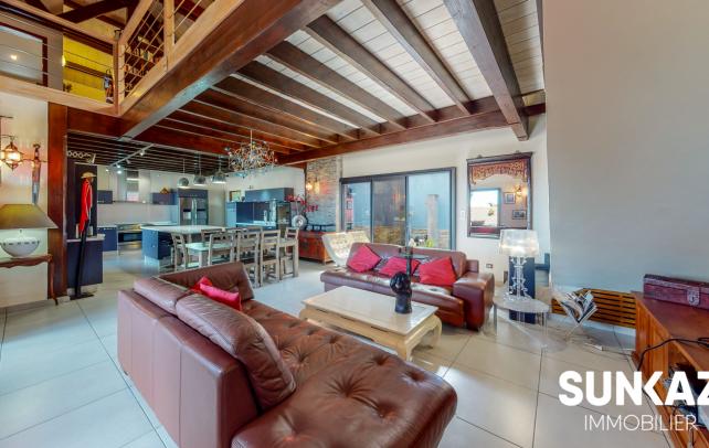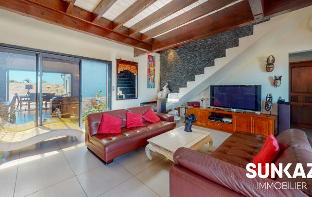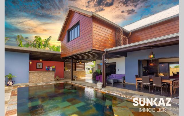 MAISON 8 PIÈCES AU CALME - AVEC PISCINE En vente : dans la ville de SAINT PIERRE (97410) sur le secteur de la Ligne des Bambous, venez découvrir cette maison T8 de 278 m² habitables et de 526 m² de terrain. Elle est composée comme suit : un beau séjour de 45 m², une cuisine, quatre chambres (entre 15 et 36 m²), une salle de sport de 24 m², un bureau de 21 m² et une salle de jeux. A l'étage, une mezzanine vous permettra de profiter de l'imposante charpente réalisée dans les règles de l'art par un compagnon. Une piscine à débordement aux dimensions généreuses vient compléter ce logement. C'est une maison avec un étage de haut standing. Elle a été construite en 2012. Elle est en excellent état général. L'environnement est hyper résidentiel, au sein d'un petit lotissement sécurisé (portail, digicode) Le bien se situe dans la commune de Saint-Pierre. Plusieurs écoles (maternelle et collège) se trouvent à proximité : le Collège Ligne des Bambous et l'École Maternelle Publique de la Ligne des Bambous. Le prix de vente de cette maison T8 est de 894 000 Euro (honoraires à la charge du vendeur). Cette maison est visitable directement sur notre site sunkaz.re Votre agence vous invite à découvrir toutes les originalités de cette maison à vendre en prenant rendez-vous avec l'un de nos conseillers immobiliers au 0262 490 490.