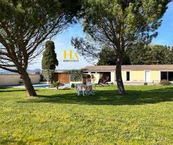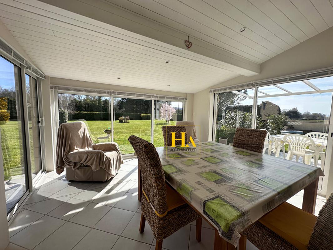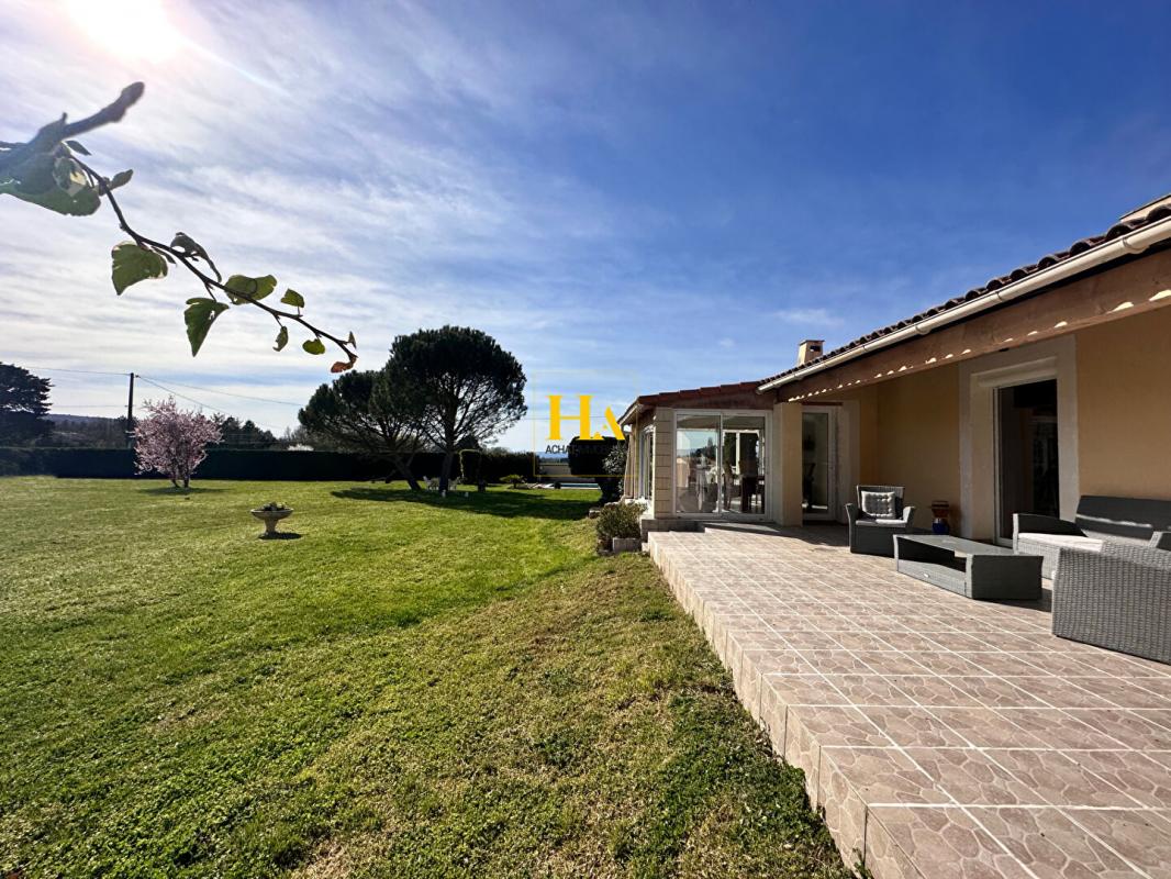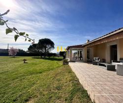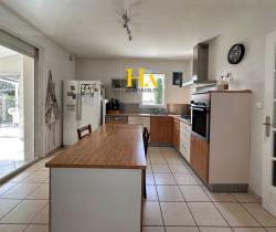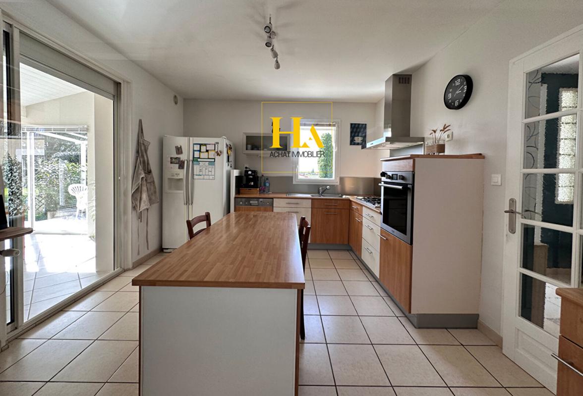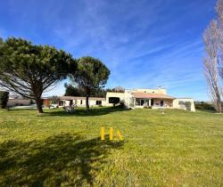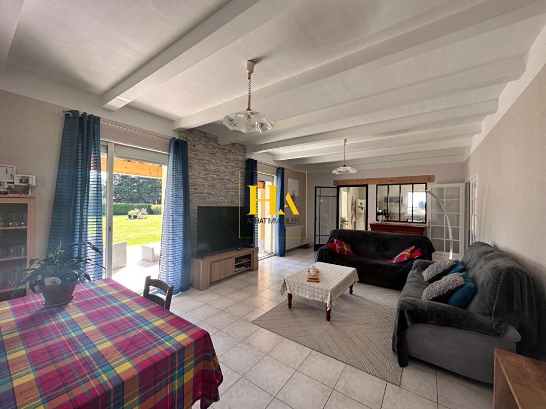 NOUVEAUTÉ EN EXCLUSIVITÉ HA IMMO ! Environnement exceptionnel pour cette demeure ! Au calme, sans vis à vis avec une vue SUD - OUEST magnifique ! Elle offre un plain-pied d'environ 170 m2, comprenant une cuisine indépendante et sa salle à manger lumineuse, un séjour aéré (avec une hauteur sous plafond de2m90) donnant sur une vaste terrasse semi-couverte. Le coin nuit, dessert 3 grandes chambres, avec une salle de bains (douche et baignoire). Vous avez aussi la possibilité d'aménager les combles pour une surface de 25 m2 pour réaliser une quatrième chambre (ouvertures existantes). En complément, toujours sur la partie en rez de chaussée vous disposez d'un bureau, d'une buanderie/ chaufferie, équipée d'une douche d'appoint et un toilette donnant accès direct vers l'extérieur. Et d'une mezzanine (salle de jeux pour enfants par exemple) Le jardin entièrement arboré d'une surface de 5000 m2 est clôturé et plat. Garage d'environ 47 m2. Idéal pour vos projets ! une dépendance non attenante d'environ 70 m2 peut être aménagée pour faire des gites ! ou encore votre bureau professionnel ! Pour de plus amples renseignements, nous vous remercions d'appeler Mme REINA au 06 12 01 74 45 Les informations sur les risques auxquels ce bien est exposé sont disponibles sur le site Géorisques : www. georisques. gouv. fr