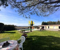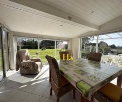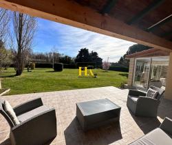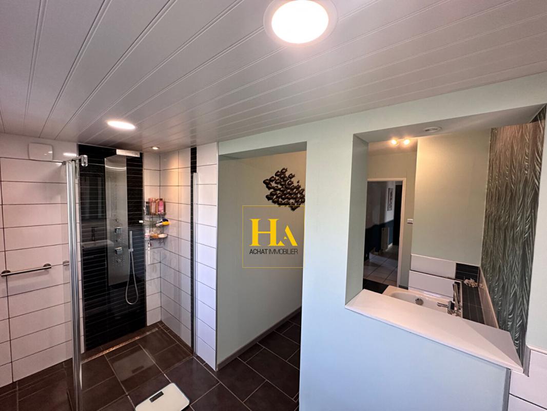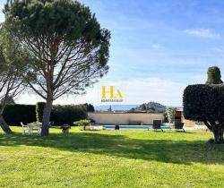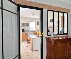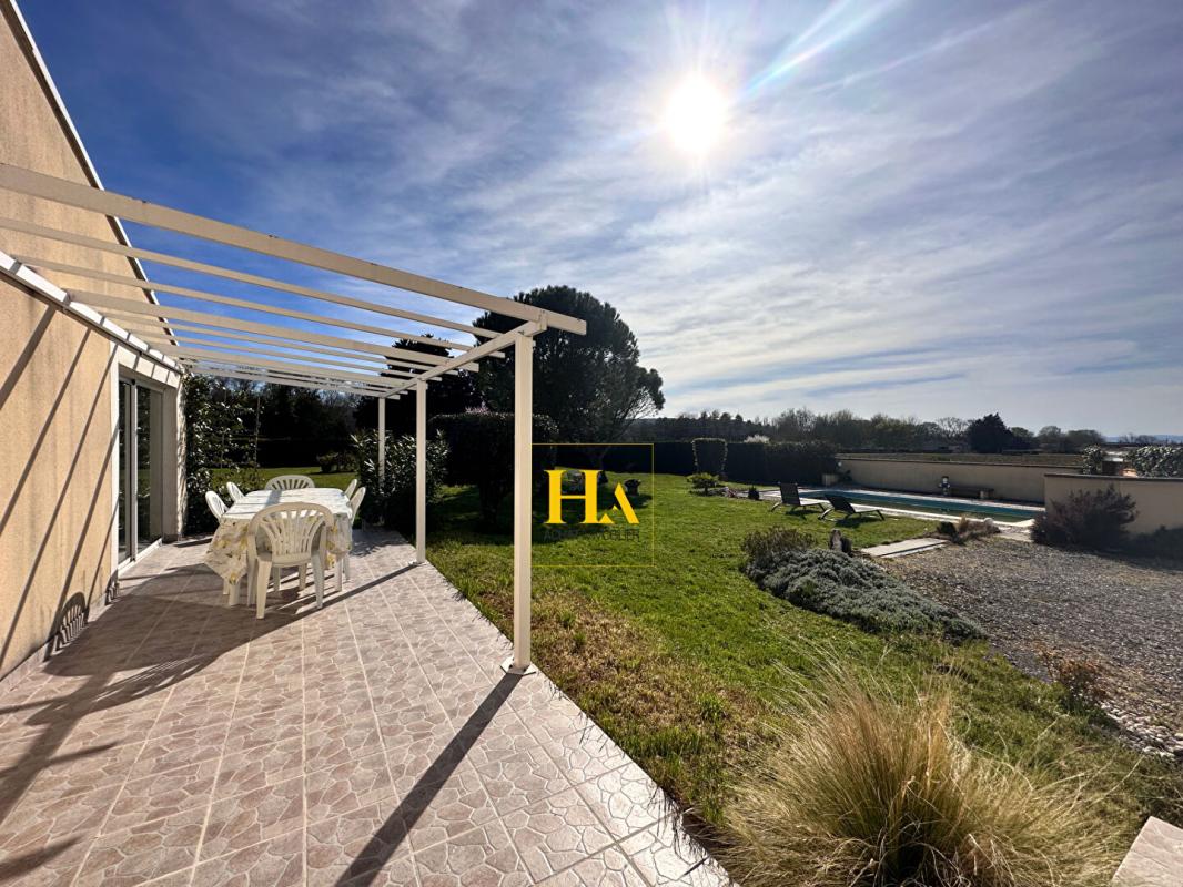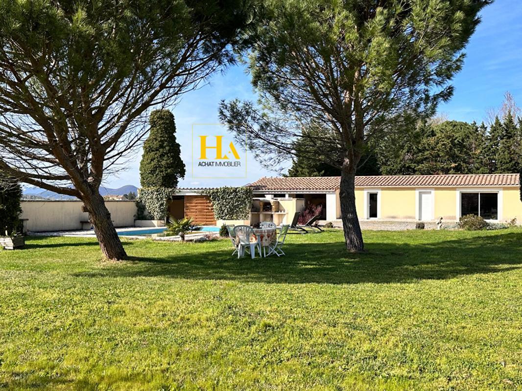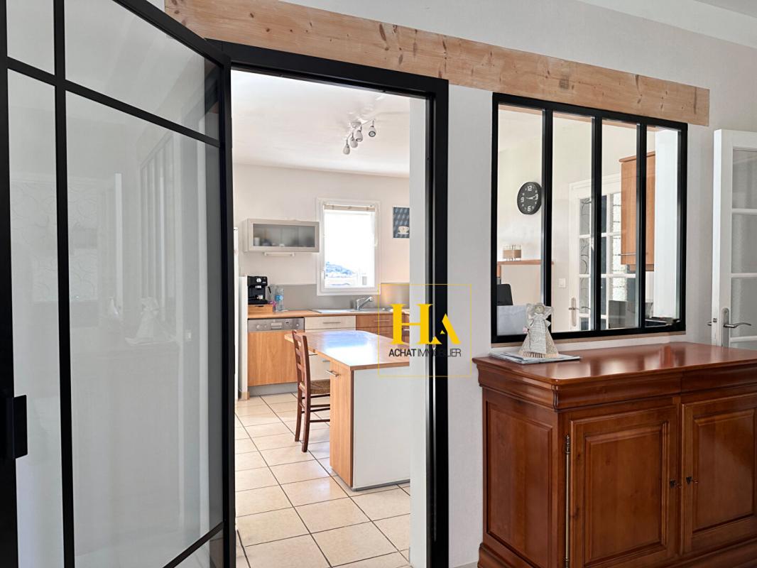 NOUVEAUTÉ EN EXCLUSIVITÉ HA IMMO ! Environnement exceptionnel pour cette demeure ! Au calme, sans vis à vis avec une vue SUD - OUEST magnifique ! Elle offre un plain-pied d'environ 170 m2, comprenant une cuisine indépendante et sa salle à manger lumineuse, un séjour aéré (avec une hauteur sous plafond de2m90) donnant sur une vaste terrasse semi-couverte. Le coin nuit, dessert 3 grandes chambres, avec une salle de bains (douche et baignoire). Vous avez aussi la possibilité d'aménager les combles pour une surface de 25 m2 pour réaliser une quatrième chambre (ouvertures existantes). En complément, toujours sur la partie en rez de chaussée vous disposez d'un bureau, d'une buanderie/ chaufferie, équipée d'une douche d'appoint et un toilette donnant accès direct vers l'extérieur. Et d'une mezzanine (salle de jeux pour enfants par exemple) Le jardin entièrement arboré d'une surface de 5000 m2 est clôturé et plat. Garage d'environ 47 m2. Idéal pour vos projets ! une dépendance non attenante d'environ 70 m2 peut être aménagée pour faire des gites ! ou encore votre bureau professionnel ! Pour de plus amples renseignements, nous vous remercions d'appeler Mme REINA au 06 12 01 74 45 Les informations sur les risques auxquels ce bien est exposé sont disponibles sur le site Géorisques : www. georisques. gouv. fr