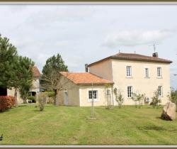 Située à seulement 5 minutes de Chalais ( proche Dordogne) où se trouve toutes commodités ( médecins, pharmacie, commerces, ecoles, restaurants, gare,...) mais également à 45 minutes d'Angoulême et une heure de Bordeaux, cette belle propriété en pierre séduira les amateurs de maison de caractère. La maison principale est composée au rez de chaussée d'une vaste entrée/bibliothèque, une cuisine de plus de 25 m² avec insert, un salon de plus de 38m² avec cheminée ainsi qu'une chambre avec salle d'eau. Au 1er étage se trouve un bureau, 3 chambres ( dont une avec salle d'eau privative) , une salle d'eau/wc séparé. Toutes les huisseries de la maison sont en double vitrage pvc, le chauffage est électrique et pompe à chaleur, l'assainissement est individuel et aux normes. Un second logement totalement indépendant se trouve également sur la propriété. Il est composé au rez de chaussée d'une pièce de vie de plus de 30m², une salle d'eau, un cellier. A l'étage se trouve 2 chambres mansardées. Une grande grange de plus de 200m² se trouve également sur la propriété ainsi que des anciens pares à cochons, un puits,une mare, un terrain de pétanque,.... L'ensemble se trouve sur un beau terrain arboré d'environ 7 000m². La propriété comprend également 3.5ha de terrain qui sont actuellement en fermage. Bien qui peut correspondre à un projet de chambres d'hôtes, de gîtes, maison familiale,....A voir !! Les honoraires d'agence sont à la charge de l'acquéreur, soit 4,29% TTC du prix du bien.Les informations sur les risques auxquels ce bien est exposé sont disponibles sur le site Géorisques : www. georisques. gouv. fr. Contactez Charlotte JAUBERT Entrepreneur Individuel, Agent commercial OptimHome (RSAC N°833 941 545 Greffe de ANGOULEME) 06 14 62 79 03 https://www.optimhome.com/conseillers/jaubertc (réf. 538326 )