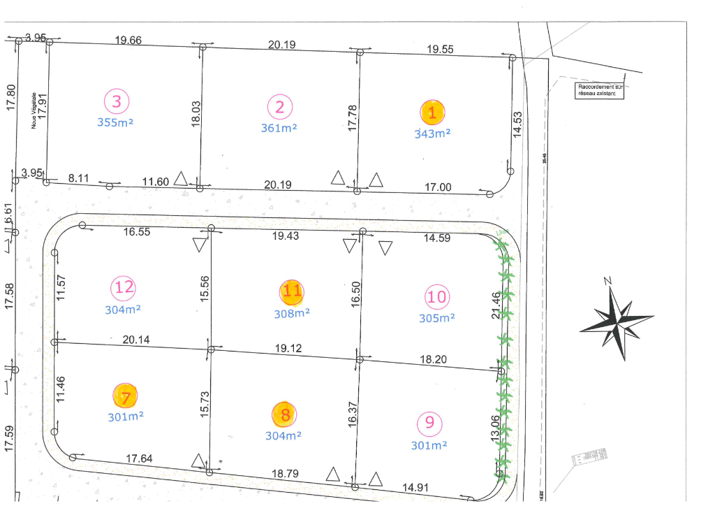 Dans un petit lotissement au calme, parcelle n °12 disponible viabilisées de 304 m² Honoraires charge vendeur