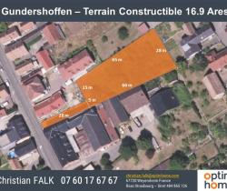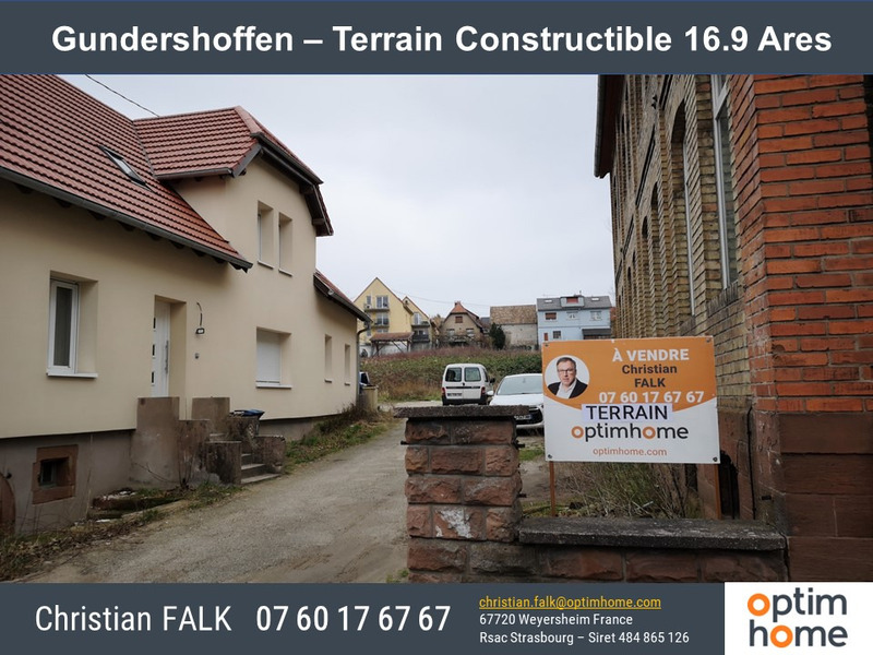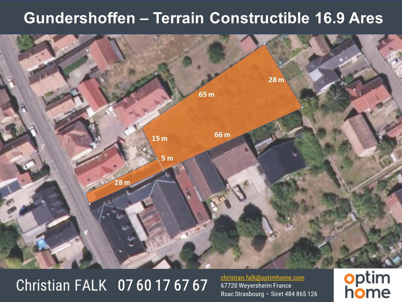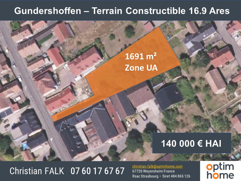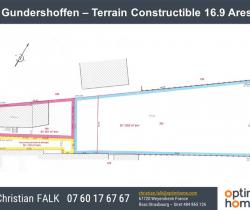Terrain constructible de 16.9 ares situé au centre de Gundershoffen en deuxième ligne et libre d'architecte. Ce terrain se trouve en zone UA (Plui Com Com Nierderbronn) et bénéficie de dimensions permettant de réaliser plusieurs types de construction ( Maison individuelle, Maison en bande, Immeuble ) La voie d'accès est d'environ 28 m de longueur sur une largeur de 4 m et la partie constructible est de 1550 m² Possibilité de division en plusieurs parcelles Les honoraires sont à la charge du vendeur.Les informations sur les risques auxquels ce bien est exposé sont disponibles sur le site Géorisques : www. georisques. gouv. fr. Contactez Christian FALK Entrepreneur Individuel, Agent commercial OptimHome (RSAC N°484 865 126 Greffe de STRASBOURG) 07 60 17 67 67 https://www.optimhome.com/conseillers/falk (réf. 538305 )